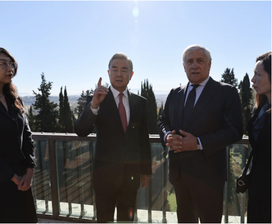 当地时间2025年10月8日,中共中央政治局委员、外交部长王毅在罗马同意大利副总理兼外长塔亚尼举行会谈。王毅说,今年是中意建交55周年。半个多世纪以来,中意开展...